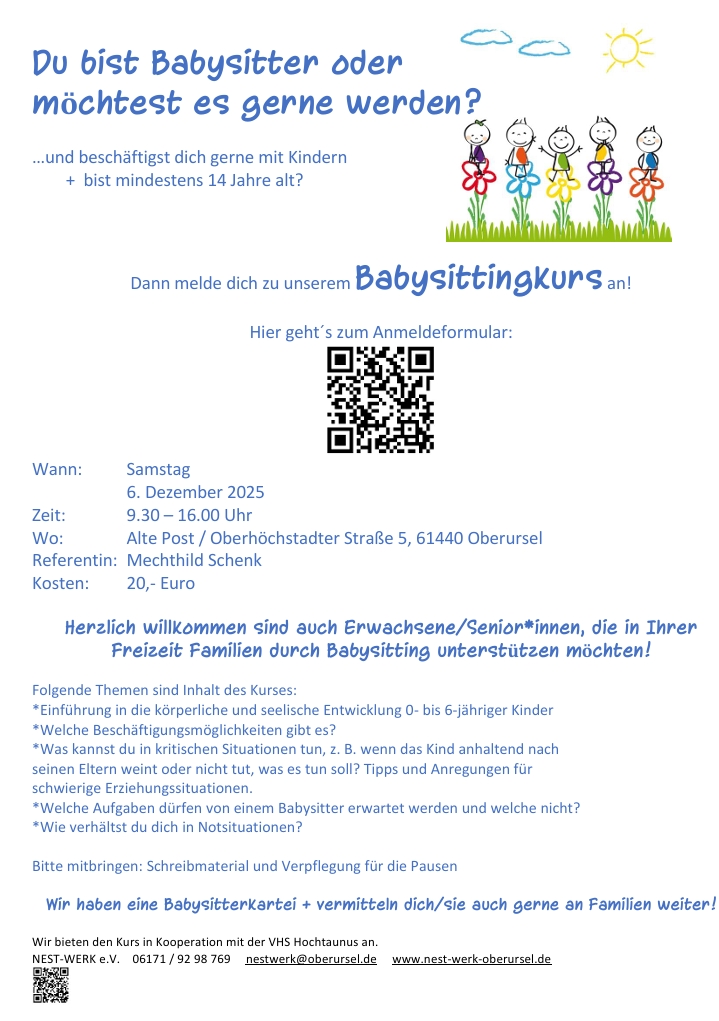 Freie Plätze Herbst/Winter 2025 gibt es hier Flyer Private Kinderbetreuung Oberursel – Zusammenschluss Tagesmütter und hier Rabennest-flyer2 und hier Flyer